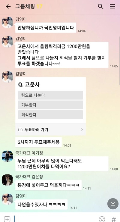 또 “각종 사인회와 행사에서 받은 돈은 선수들 개인 통장으로 지급됐다. 선수들이 받은 격려금과 후원금은 항상 단체대화방에서 공개적으로 이야기했다”며 “돈과 관련된 일은 최대한 투명하고 공개적으로 처리하고자 했다”고 강조했다.