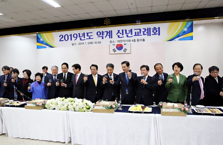 대한약사회와 한국제약바이오협회는 3일 대한약사회관 4층 대강당에서 ‘2019년 약계 신년교례회’를 개최했다.