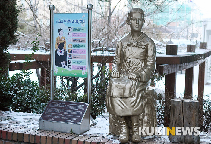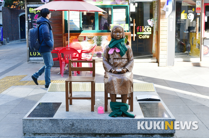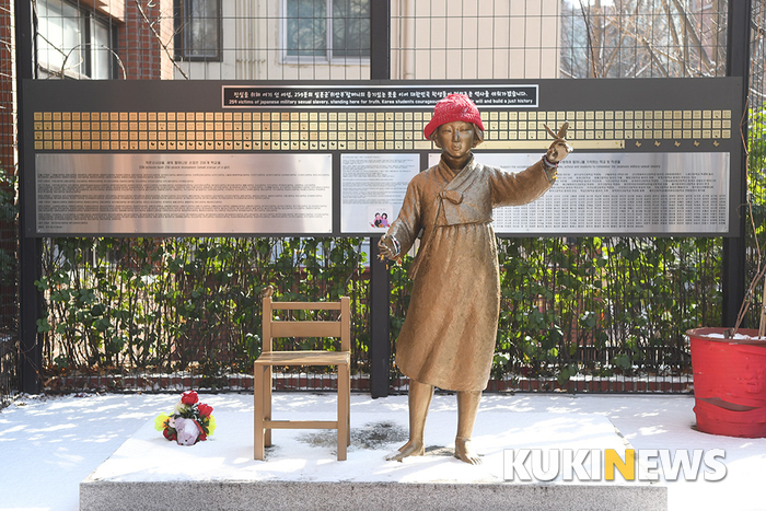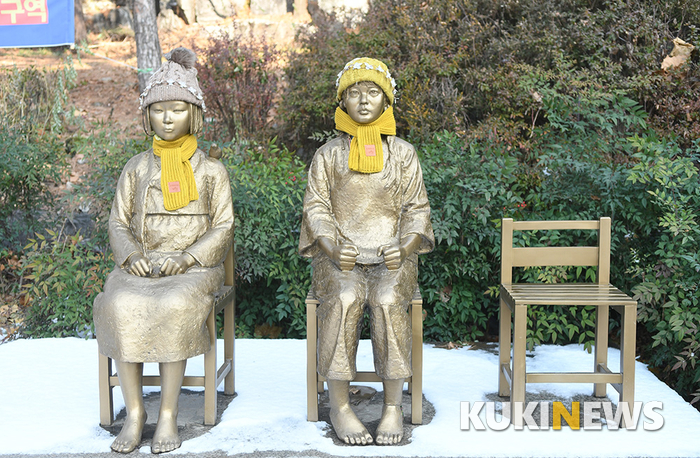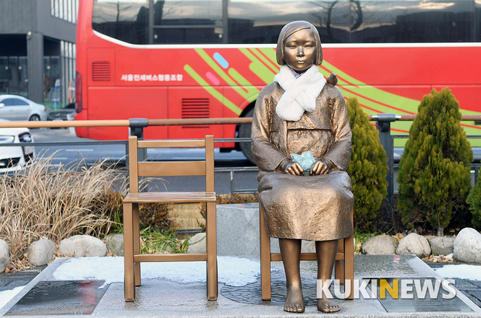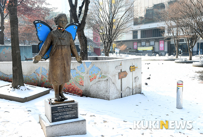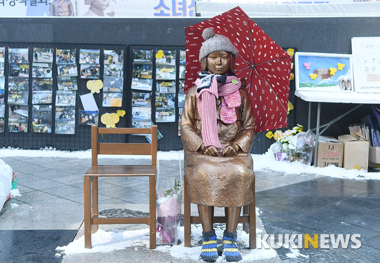 추운 겨울에도 묵묵히 제 자리를 지키고 있는 소녀상을 보며 위안부 피해자 할머니들의 아픔을 잠시라도 기억한다면 할머니들에게 큰 위로가 되지 않을까요.
