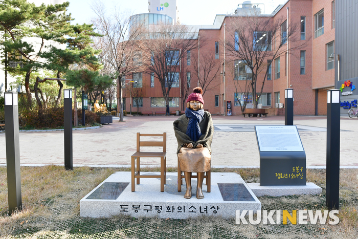 강북구 평화의 소녀상(서울특별시 강북구 도봉로 351,2016년 12월 10일 건립) “피해자는 뒤로 물러서있게 해놓고 돈 달랑 몇 푼 쥐어주고 입 막으려 하느냐. 절대로 안 된다”-이옥선 할머니(93세)