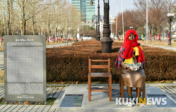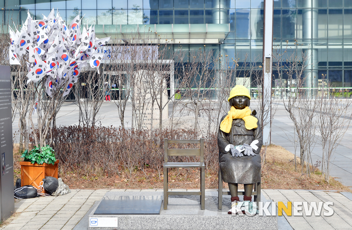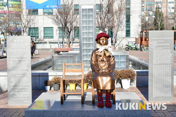 추운 겨울에도 묵묵히 제 자리를 지키고 있는 소녀상을 보며 위안부 피해자 할머니들의 아픔을 잠시라도 기억한다면 할머니들에게 큰 위로가 되지 않을까요.