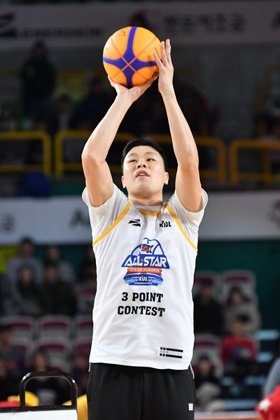 창원 LG의 조성민은 20일 창원실내체육관에서 열린 ‘2018-2019 SKT 5GX 프로농구 올스타전’ 3점슛 콘테스트에 출전해 부산 KT의 마커스 랜드리를 꺾고 우승을 차지했다.
