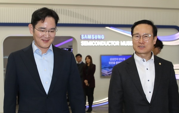이재용 삼성전자 부회장은 30일 홍영표 원내대표를 비롯한 더불어민주당 원내지도부들과 만나 “삼성반도체를 우리 것이라고 생각하지 않는다. 우리 사회의 소중한 자산이라고 생각한다”고 말했다.