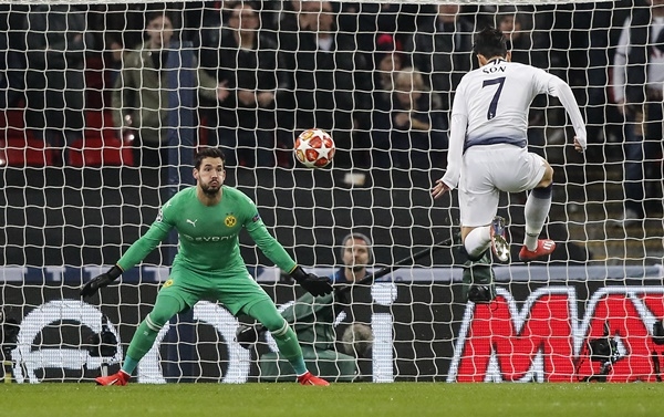 손흥민은 14일 오전(한국시간) 영국 런던 웸블리에서 열린 도르트문트와의 ‘2018-2019시즌 유럽축구연맹(UEFA) 챔피언스리그 16강 1차전’에서 후반 2분 선제 결승골을 기록하며팀의 3-0 완승을 이끌었다. 손흥민은 베르통언이 왼쪽 측면에서 올린 크로스를 인사이드 발리킥으로 연결해 골망을 흔들었다.