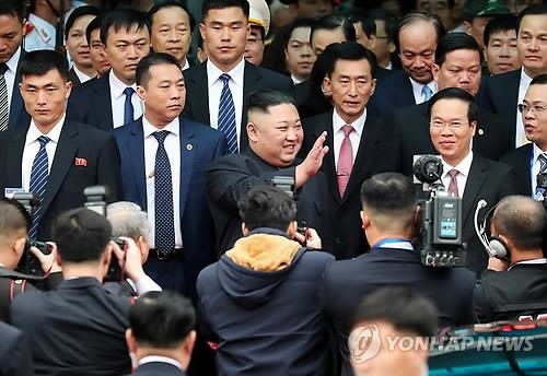 곧이어 나열한 베트남 관계자들과 차례차례 악수를 한 김 위원장은 취재진과 환영인파 등에 둘러싸여 플랫폼 밖으로 나왔다.