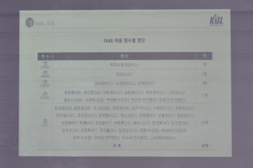 이 중 가장 많은 플라핑을 한 선수는 울산 현대모비스 박경상이다. 박경상은 5라운드까지 총 5번의 플라핑을 시도했고 벌금 30만원을 냈다. 외국인선수 중에서는 4개를 범한 안양 KGC 레이션 테리였다.