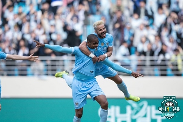 대구 FC가 9일 대구 DBG대구은행파크에서 열린 ‘하나원큐 K리그 2019’ 2라운드 제주 유나이티드와의 경기에서 2-0으로 승리했다. 대구는 올 시즌 첫 승리를 거머쥐는 것과 동시에 ‘포레스트 아레나’에서의 첫 경기를 승리로 장식하는 겹경사를 누렸다.