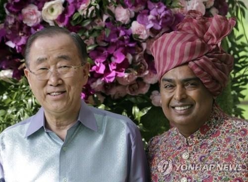 ‘아시아 최고 갑부’ 무케시 암바니 인도 릴라이언스 인더스트리 회장의 장남이 초특급 호화 결혼식을 올렸다. 반기문 전 UN 사무총장과 이재용 삼성전자 부회장 등이 하객으로 참석했다.