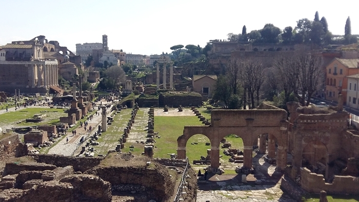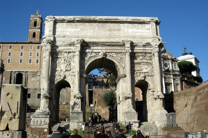 세나토리오 궁전을 돌아가면 로마의 유적이 흩어져 있는 공간이 나타난다. 로마 포럼의 유적이다. 건물은 무너지고 몇 개의 기둥만 남았지만, 살아남은 몇 개의 건물 덕분에 그나마 흩어지지 않은 모양새다. 가까이에 서있는 개선문은 셉티미우스 세베루스의 개선문(Arco di Settimio Severo)이다.
