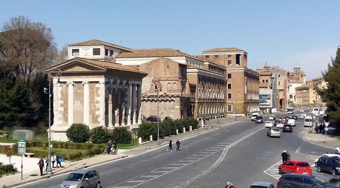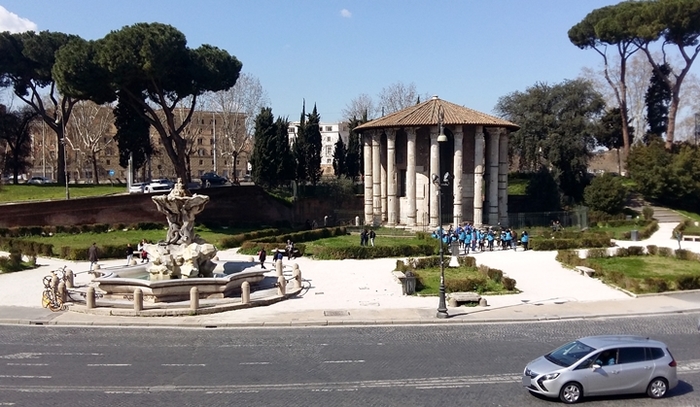 계단을 올라 오페라극장 앞으로 가면 길건너 편 고대의 소시장 자리에 있는 보카 델라 베리타 광장(Piazza Bocca della Verità)이 한눈에 들어온다. 보카 델라 베리타 광장은 테베레강을 거슬러 올라온 배에서 내려지는 다양한 물류들이 거래되던 장소였다. 광장 오른편에는 헤라클레스 빅터 사원이 있다.
