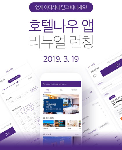 야놀자는 리뉴얼을 기념해 ‘구매적립금 5배 이벤트’도 실시한다. 이달 말까지 호텔, 리조트 등 숙소 유형에 관계 없이 모든 숙박 예약건의 실결제금액 5%를 적립금으로 돌려준다. 같은 기간, 호텔나우 모바일 앱 신규 가입 회원에게는 5만원 상당의 쿠폰팩을 제공한다. 기존 고객들에게는 내달 19일까지 사용 가능한 적립금 1000원을 일괄 지급했다.
