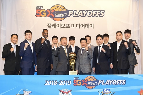 21일 서울 강남 리베라 호텔에서 ‘2018-2019 SKT 5GX 프로농구’ 플레이오프(PO) 미디어데이가 열렸다. 모비스, 인천 전자랜드, 창원 LG, 전주 KCC, 고양 오리온, 부산 KT 등 6개 구단 감독과 선수가 모여 1시간 내내 입담을 뽐냈다.