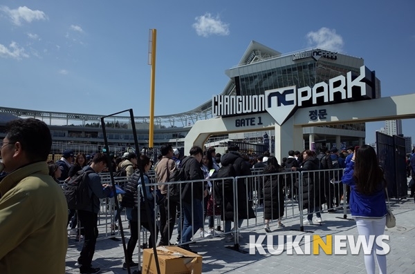 야구장에 도착하자 이미 각 게이트 앞으로 수많은 관중들이 줄지어 서 있었다. 기존 마산구장을 사용할 때는 좀처럼 보기 힘들었던 광경이었다.