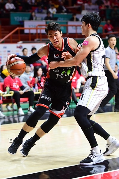 부산 KT는 28일 부산사직실내체육관에서 열린 ‘2018-2019 SKT 5GX 프로농구’ 6강 플레이오프(5전 3승) 창원 LG와의 3차전에서 103-83으로 대승을 거뒀다. 시리즈 2패로 플레이오프 탈락 위기에 내몰렸던 KT는 1승을 거머쥐며 반전의 계기를 마련했다.