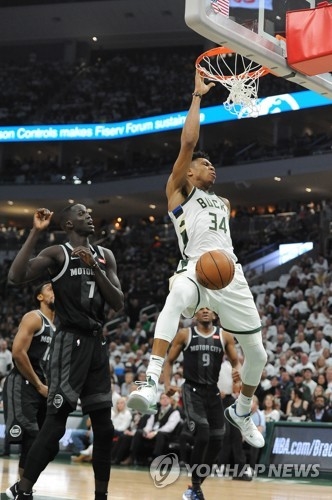 밀워키 벅스는 15일(한국시간) 미국 밀워키주 파이서브 포럼에서 열린 ‘2018~2019 NBA 플레이오프 1라운드’ 디트로이트 피스톤즈와의 1차전에서 121-86으로 대승을 거뒀다.