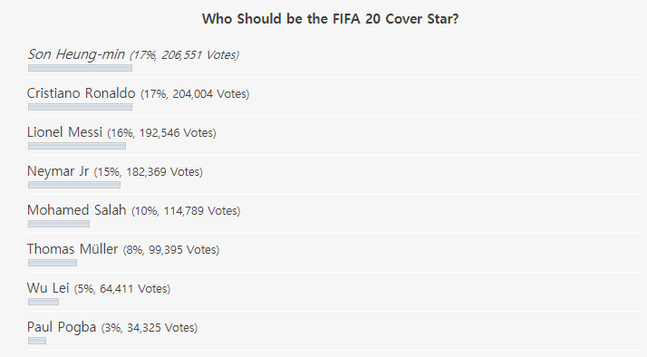 매체는 “이 투표로 손흥민이 표지모델로 확정되는 것은 아니지만 EA스포츠에게 확실히 고민거리를 안겼다”고 전했다.
