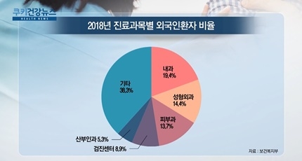 진료과목별로는 내과(19.4%)를 가장 많이 찾았고, 이어 성형외과(14.4%), 피부과(13.7%), 검진센터(8.9%), 산부인과(5.3%) 순이었습니다.