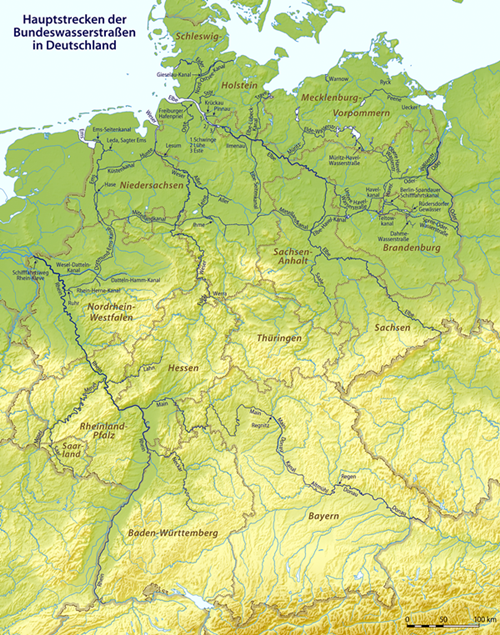 독일의 큰 강으로는 독일 남부를 서쪽에서 동쪽으로 흐르는 도나우 강이 있고, 남부에서 발원해 북쪽으로 흘러 북해로 들어가는 4개의 큰 강이 있다. 서쪽에 있는 라인(Rhein) 강, 중부에 있는 베저(Weser) 강과 엘베(Elbe) 강, 그리고 폴란드와 국경을 이루는 오데르(Oder) 강이 있다.