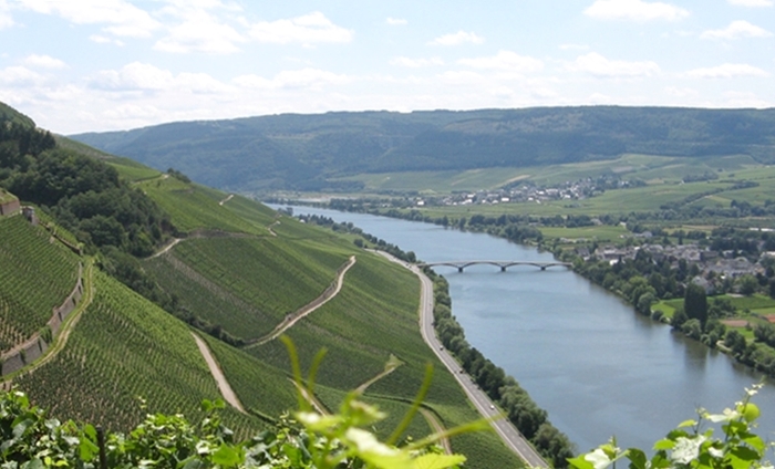 뤼덴하임에 가까워지면서 풍경이 일신해 주변 언덕의 완만한 경사가 온통 포도밭이다. 변성암으로 된 토양 때문에 배수가 잘되기 때문인지 포도밭이 도로변까지 내려와 있다. 유럽대륙의 북쪽에 위치한 독일의 경우 일조량이 많지 않기 때문에 레드와인 품종은 키울 수가 없는 반면 일조량이 짧아도 되는 화이트 와인 품종을 주로 키우고 있다. 특히 뤼데스하임에서 북쪽으로 조금 떨어진 코블렌츠(Koblenz)에서 라인 강과 합류하는 모젤 강변은 화이트 와인의 명산지로 꼽힌다.