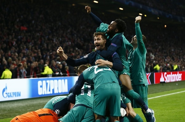 토트넘 홋스퍼는 9일(한국시간) 네덜란드 암스테르담 요한 크루이프 아레나에서 열린 ‘2018-2019 유럽축구연맹(UEFA) 챔피언스리그 4강’ 아약스와의 2차전에서 3-2로 승리를 거뒀다. 1차전에서 0-1로 패했던 토트넘은 합계 3-3 동률을 이뤘지만 원정 다득점을 우선하는 대회 규칙에 따라 결승에 진출했다.