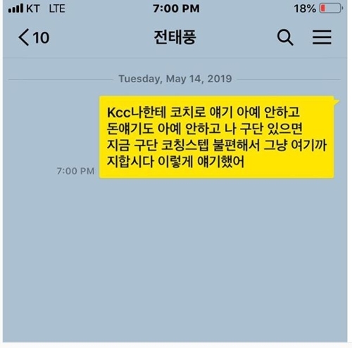 전태풍은 14일 자신의 인스타그램에 카카오톡 메시지가 담긴 사진 한 장을 공개했다. 이에 따르면 KCC 구단은 전태풍에게 계약 얘기, 코치 제안 등을 하지 않았다. 전태풍은 “나 구단 있으면 코칭스텝 불편해서 그냥 여기까지 합시다 이렇게 얘기했어”라고 털어놨다.