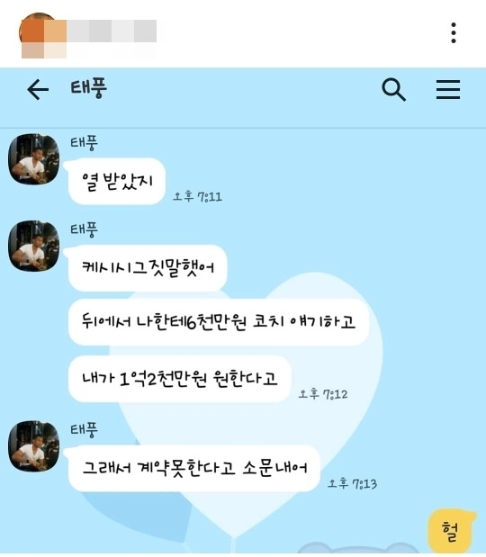 전태풍은 팬과의 대화 도중 “KCC가 나에게 그지말(거짓말) 한 거야. 열받았지. 케시시 그짓말 했어. 뒤에서 나한테 6000만원 얘기하고 내가 1억2000만원 원한다고. 그래서 계약 못한다고 소문냈어”라며 화를 참지 못했다.
