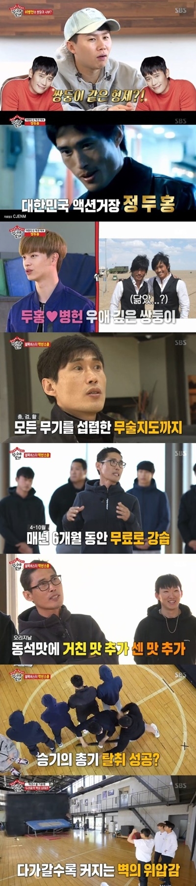 기본훈련을 마친 멤버들에게 정두홍은 “액션은 감정이다”라며 “감정이 있어야 테크닉이 산다”고 설명했다. 정두홍은 몸동작에 감정까지 더해진 액션을 선보이며 리얼리티를 극대화시킨 액션을 선보여 멤버들을 놀라게 만들었다.