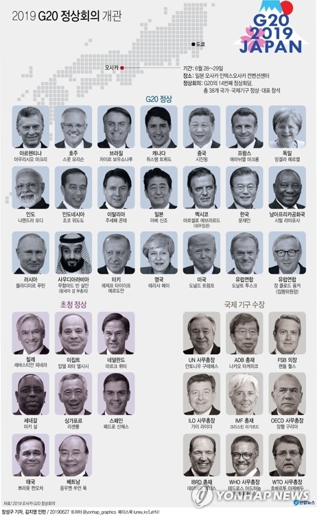 세계 주요 국가 정상과 국제기구 대표들이 참석하는 주요 20개국(G20) 정상회의가 일본 오사카에서 개막됐다.