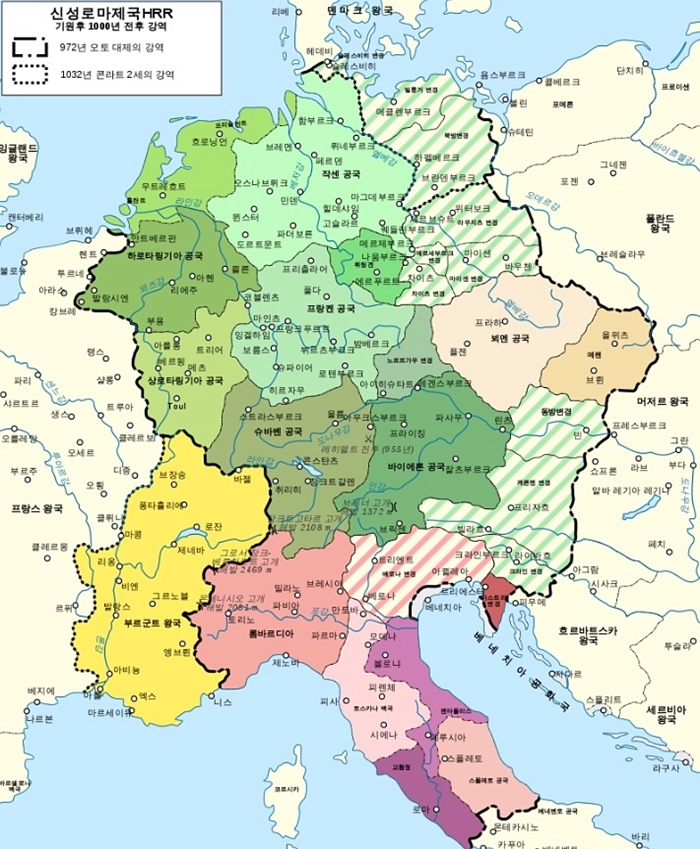 한편 독일왕국의 오토 대제는 936년 부왕 하인리히 1세에 이어 독일왕으로 선출됐다. 961년에는 베렝가리오 2세의 이탈리아왕국을 격파하고, 이듬해 교황 요한 12세에 의해 신성로마제국의 황제가 됐다. 역사학자에 따라서 오토대제로부터 신성로마제국이 시작됐다고도 한다. 오토왕조의 서로마제국은 1024년 하인리히 2세의 죽음으로 끝났다.