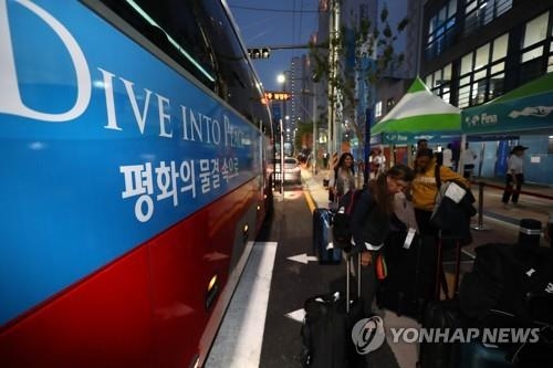 버스에는 아티스틱수영 경기장과 경영 훈련장이 마련된 염주체육관에서 우산동 선수촌으로 돌아가던 5개국 25명의 선수가 타고 있었다.