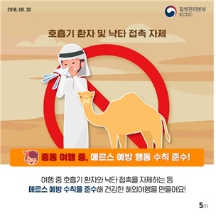 특히, 메르스의 경우 사우디아라비아에서 낙타 접촉 또는 선행감염자와 접촉을 통한 발생이 지속되고 있기 때문에 현지에서 낙타접촉을 금지하고, 의료기관 방문을 자제하는 등 추가적인 주의가 필요하다.