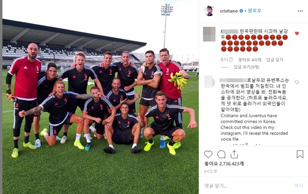 지난달 26일 팀 K리그와의 친선전에 무단으로 결장한 크리스티아누 호날두(유벤투스)에게 비판이 쏟아지고 있다. 그의 SNS에는 한국 팬들의 비난 댓글이 줄을 잇는다. 호날두는 댓글들을 꾸준히 삭제하면서도 공식적인 입장을 내놓지는 않고 있다.