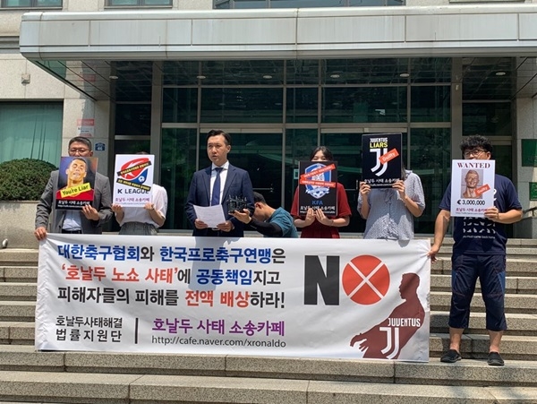 연합뉴스 보도에 따르면 네이버 ‘호날두 사태 소송카페’ 운영진과 법률대리인단은 5일 서울 종로구 축구회관 앞에서 기자회견을 열고 “대한축구협회는 관련 정보를 투명하게 공개하고 사태를 책임지고 해결하라”고 주장했다.