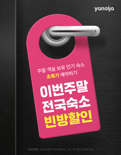 야놀자는 오는 18일까지 성수기 숙소 예약에 어려움을 겪는 고객들을 위해 주말 예약이 가능한 전국 900여개의 숙소를 한 눈에 확인할 수 있는 ‘빈 방 기획전’을 마련하고 최대 78% 할인 판매한다.