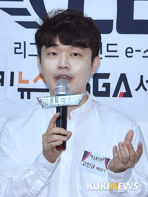 결승전 해설을 맡은 고인규 해설위원이 관중들에게 인사하고 있다.