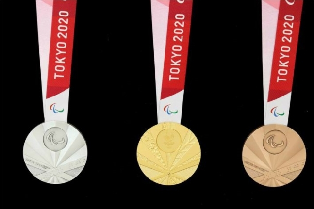 지난 25일 일본은 도쿄패럴림픽 공식 홈페이지를 통해 대회 금·은·동메달 디자인을 공개했다. 메달 정중앙에는 대회 공식 로고가 새겨져 있고, 여러 개의 선이 방사형으로 뻗어 있다.