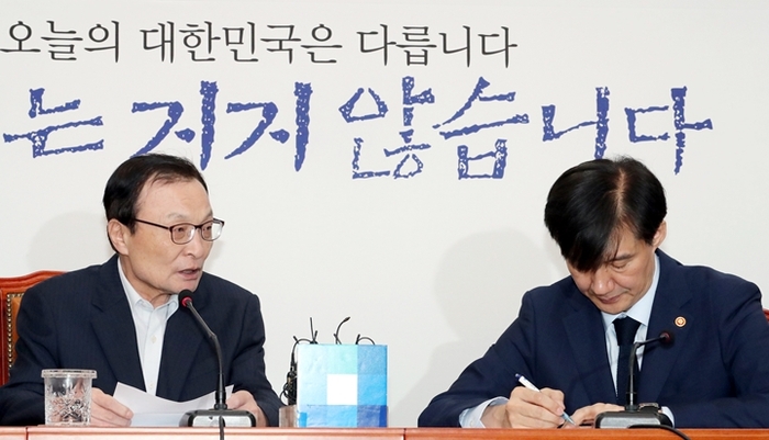 조국 법무부장관 임명에 연이은 삭발과 장외투쟁으로 야당이 불편한 심기를 표출하는 상황에서도 여당과 조 장관의 만남은 훈풍이 불었다. 서로가 고개를 숙이며 미래를 기약하는 모습이었다.