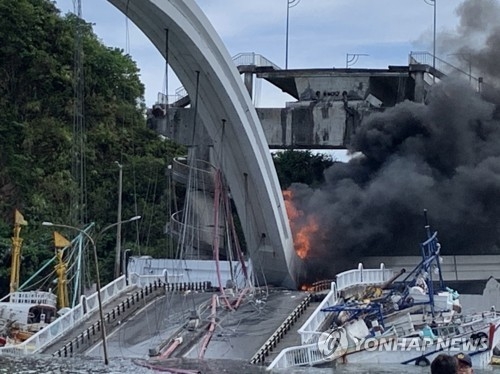 대만 북동부 항구에서 다리가 무너져 10명이 다치고 6명이 실종됐다.