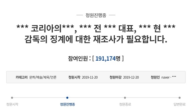 20일 청와대 국민청원 게시판에는 ‘카나비 사건을 재조사 해달라’는 내용의 청원이 올라왔다. 작성자는 조 전 대표에 대해서는 사법기관의 조사를 요구했으나 김 전 감독에게는 라이엇 코리아 자체 조사를 시행해 징계를 발표했다면서 재조사가 필요하다고 주장했다. 26일 오후 2시 기준으로 19 만여 명이 청원에 동참하는 등 열기가 뜨겁다.