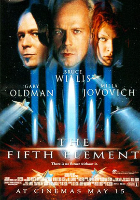 영화에서는 지구의 생명체는 이 4가지 원소가 절대 생명체를 에워싸야 살아나는데, 악마가 절대생명체의 자리를 차지하려고 지구를 위협하는 상황을 보여준다. 무한한 용기와 파괴력이 있지만 사랑이 없으면 존재 가치를 얻지 못하는 절대 생명체(제5의 원소)-신이 보낸 소녀 릴루(밀라 요보비치). 그녀가 코벤 달라스(브루스 윌리스)를 사랑하게 되어 진정한 사랑의 의미를 깨닫게 되어 지구는 악의 세력을 물리치고 새 생명을 얻는다.