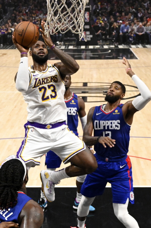 레이커스는 8일 미국 캘리포니아주 로스앤젤레스 스테이플스 센터에서 열린 ‘2019~2020 미국프로농구(NBA) 정규리그’ 클리퍼스를 112대 103으로 꺾었다. 4연승을 달린 레이커스는 49승 13패로 서부 컨퍼런스 선두자리를 지켰다. 6연승 행진이 멈춘 클리퍼스는 레이커스에 6.5경기차 2위가 됐다.