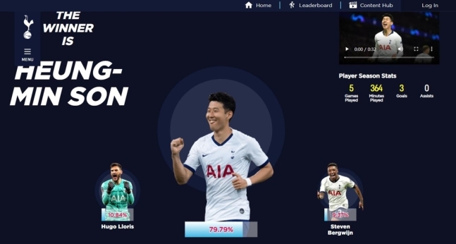 토트넘은 20일(한국시간) 홈페이지를 통해 손흥민이 2월의 선수 투표에서 79.79%를 차지해 위고 요리스(골키퍼·10.84%)를 크게 따돌렸다고 전했다.