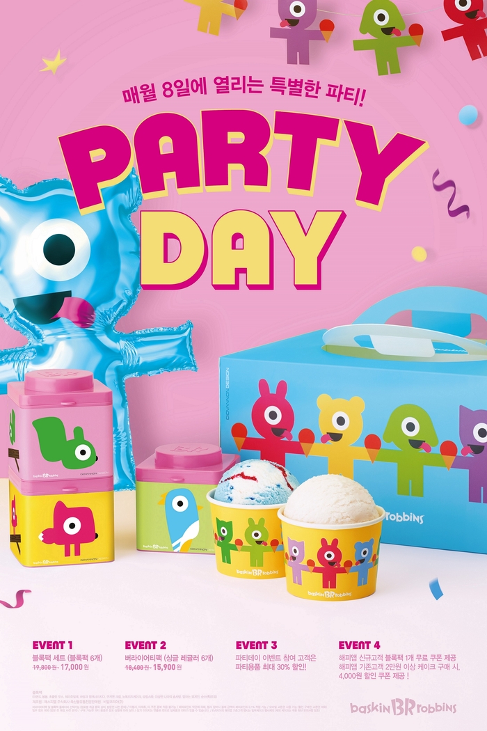 [쿠키뉴스] 조현우 기자 =배스킨라빈스가 ‘파티데이’ 프로모션을 진행한다.