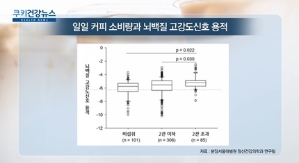 분당서울대병원 정신건강의학과 연구팀은 60세 이상 노인 4백여 명을 대상으로 비교 분석한 결과, 하루 2잔을 초과해 커피를 마시는 여성 그룹은 뇌로 가는 혈류가 줄면서 생기는 뇌백질 고강도신호 용적이 더 컸다며 이 같이 밝혔습니다.