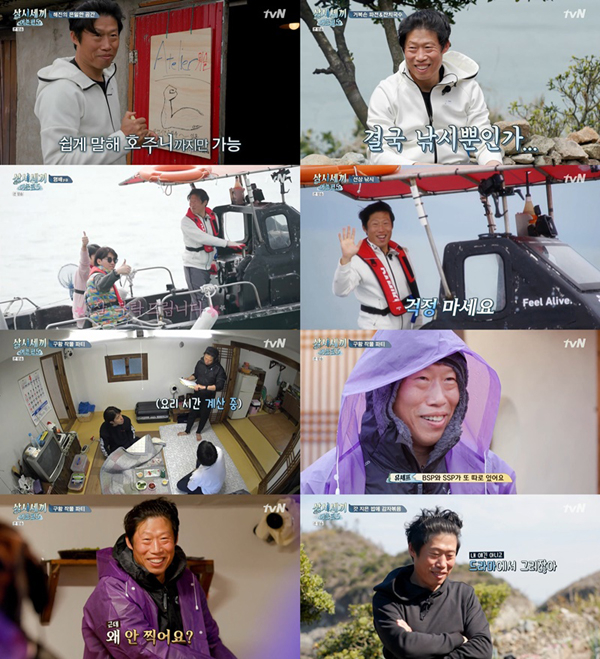 이어 유해진은 선상 낚시를 위해 직접 배 운전에 나섰고 안정적이고 부드러운 승선감에 승객으로 오른 차승원과 손호준은 만족감을 드러냈다. 뿐만 아니라, 유해진은 특별 가이드를 자처하며 현실감 넘치는 상황극을 이끌어 내 차승원과 종잡을 수 없는 티키타카를 선보였다. 그런 와중에 궂은 날씨로 파도가 거세지자 유해진은 침착하게 선착장으로 복귀하며 다시 한번 ‘마도로스 유’ 면모를 유감없이 발휘했다.