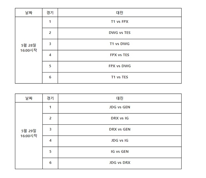 30일에 진행되는 준결승전과 5월 31일 열리는 결승전은 BO5(5전3승제)로 치러진다. 준결승은 각 조의 1위 팀이 상대 조의 2위 팀과 대진하는 구조다. 준결승과 결승의 경우, 1세트는 블라인드 픽으로, 나머지 세트는 기존과 동일한 드래프트 픽으로 진행할 예정이다.