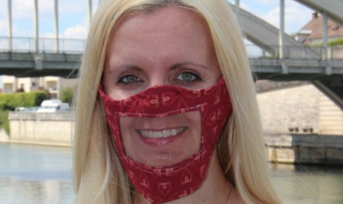 이에 프랑스 청각장애 지원 단체 ‘핸드인핸드’는 마스크 가운데를 뚫고 투명 필름을 붙인 마스크를 제작했다.