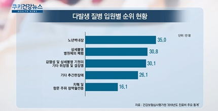 입원 치료는 노년백내장이, 외래 진료는 치은염 및 치주질환이 꼽혔습니다.