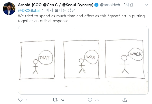 일부 팬들은 특정 선수를 언급한 것도 모자라 선수의 목이 바닥에 나뒹구는 다소 충격적인 연출을 시도한 점 등을 들어 상대 선수에 대한 존중이 부족한 콘텐츠라고 비판했다. 노골적인 표현에 불편함을 느낀 팬들은 DRX측에 게시글 삭제를 요청하기도 했다.