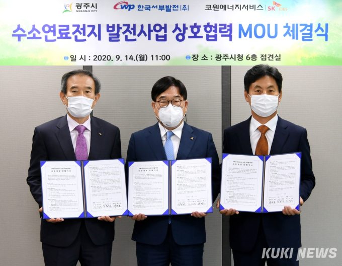 [광주=쿠키뉴스 김정국 기자] 경기도 광주시는 14일 한국서부발전, 코원에너지서비스와 수소연료전지 발전사업을 추진하기 위한 상호협력 업무협약을 체결했다(사진).